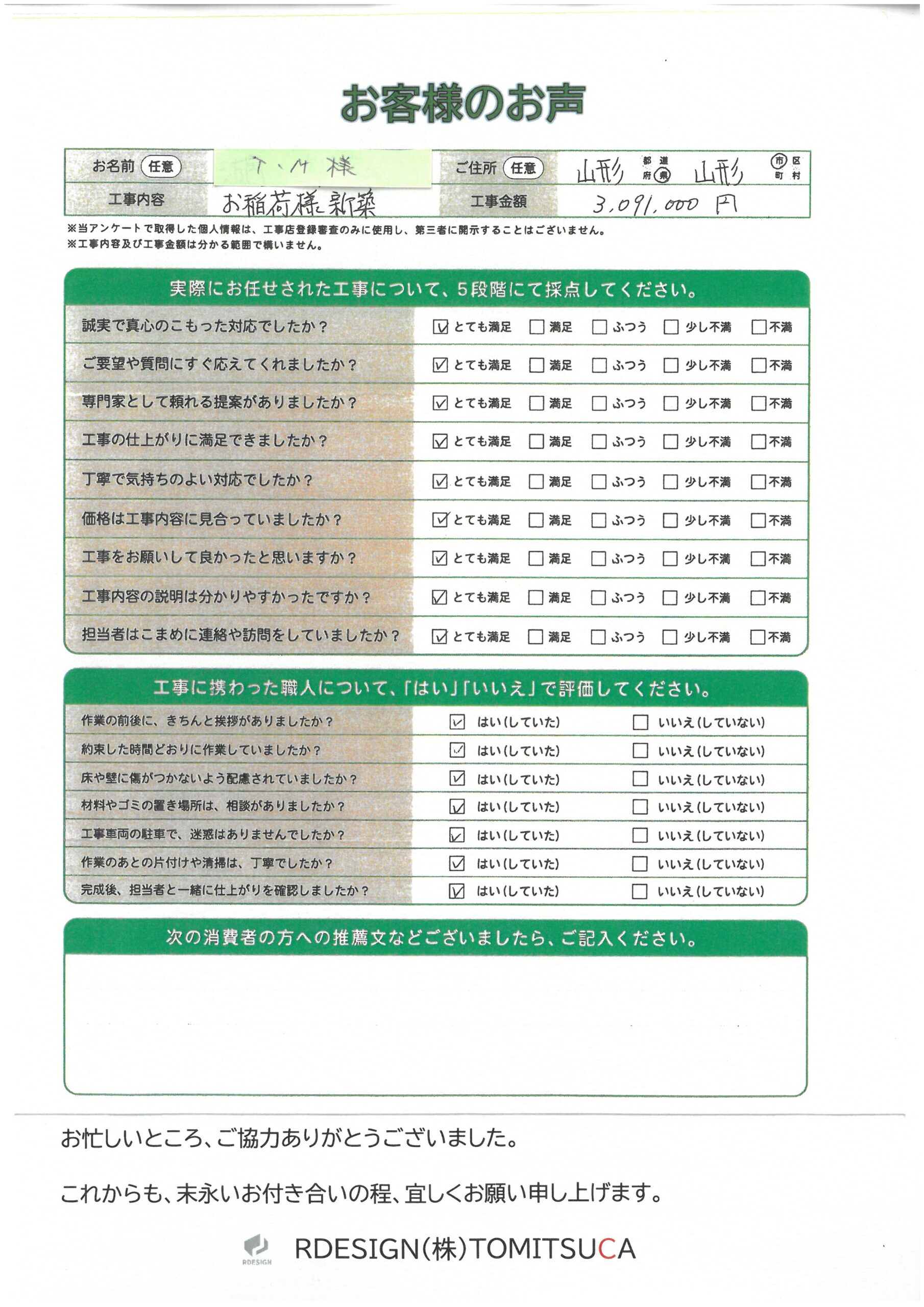 HOME > voice > お客様のお声~お稲荷様新築~